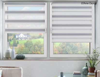 Das Doppelrollo 17mm mit Kettenzugtechnik bietet flexiblen Licht- und Sichtschutz für Ihre Holz- und Kunststofffenster. Die Montage erfolgt durch Klemmträger, die im Lieferumfang enthalten sind. Die Lichtdurchlassstärke kann variabel durch Verwendung des Kettenzuges verstellt werden. Je nach Ihrem Bedürfnissen können Sie das Rollo entweder so einstellen, daß Sie ungehindert nach Draußen schauen können, oder eben blickdicht um unerwünschte Einblicke zu verwehren.