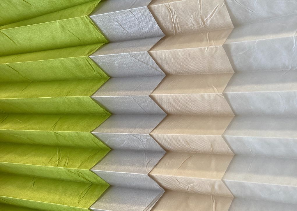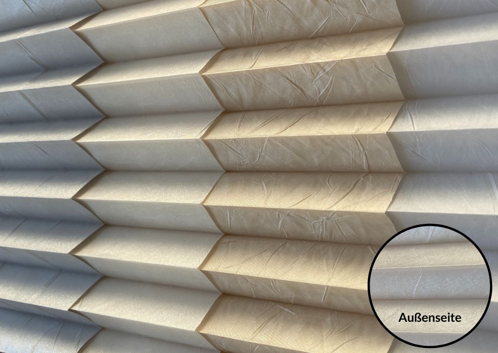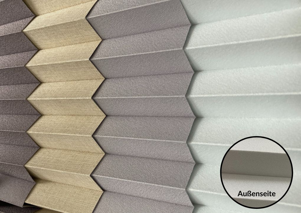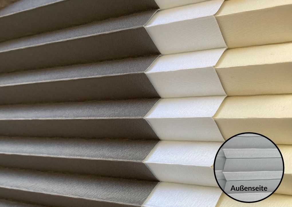 Das Wabenplissee bietet einzigartige Stofflagen mit isolierenden Hohlkammern, die vor Hitze und Kälte schützen. Es erzeugt angenehmes Licht, eliminiert Blendeffekte und verbessert die Raumakustik um bis zu 45%. Es kann auch in Feuchträumen eingesetzt werden und lässt sich zudem leicht reinigen, indem Sie es feucht abwischen.