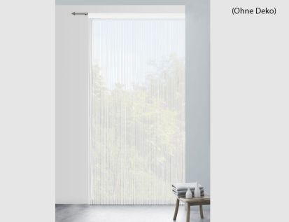 Extravagant, Elegant, Repräsentativ - Eine überaus auffällige, aber auch sehr elegante Fenster-Dekoration holen Sie sich mit dem weißen Fadenstore mit silbernem Lurexeffekt nach Hause.