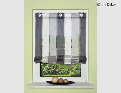 Die Raffung erfolgt mittels der Bändchen und kann mit den angebrachten Stoppern auf Ihrer Wunschhöhe fixiert werden.