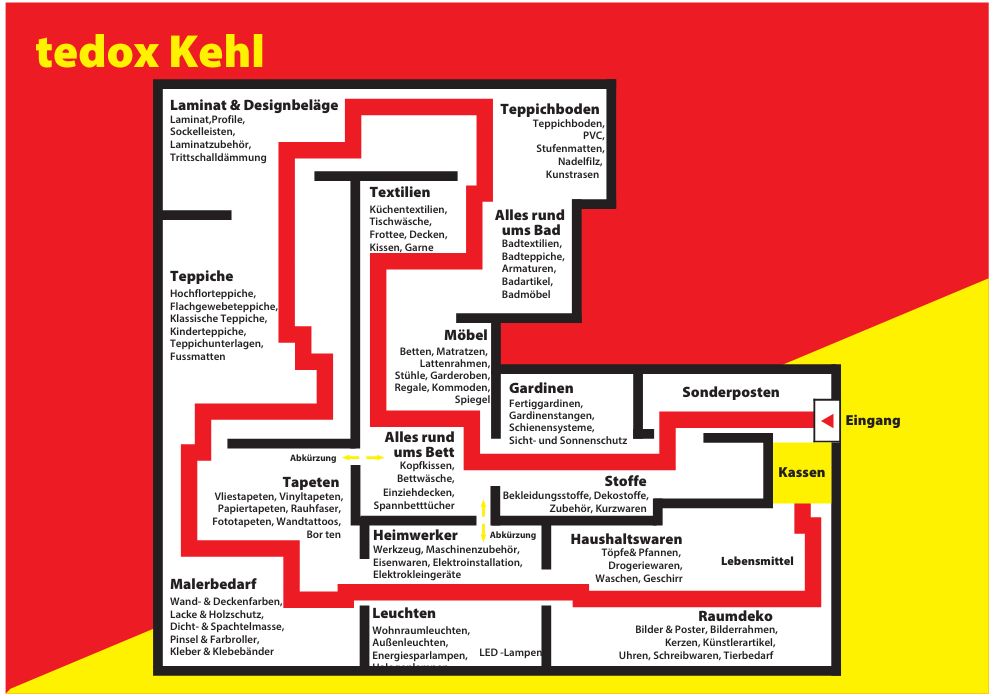In der tedox-Filiale Kehl erwartet Sie ein großes Sortiment rund ums Renovieren: Farben, Tapeten, Laminat, Gardinen, Möbel & mehr – alles zum Discounterpreis.